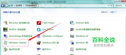 另外如果找不到控制面板里面的Windows Update更新程序,可以在控制面板上面,点击向下的小箭头,选择里面的所有控制面板,在打开的界面上就可以找到