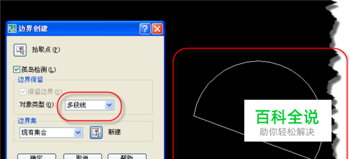 大家可以创建多段线,输入BO命令,在“边界创建”窗口,如图,选择“多段线”点击新建按钮。选择多个对象后可以将几个对象处理成一个完整的多段线,这个时候就可以使用AA指令。