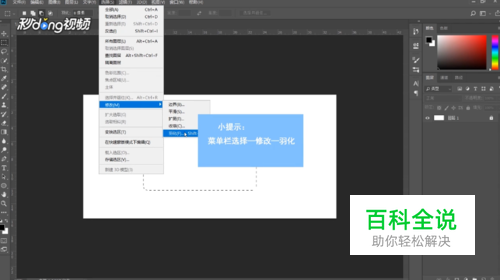 也可以点击菜单栏“选择”,选择“修改”,也可以找到“羽化”命令。