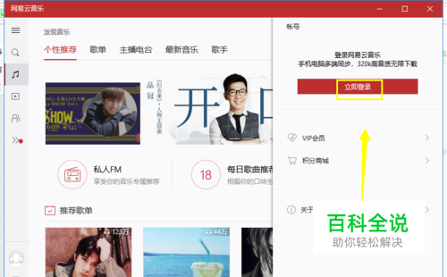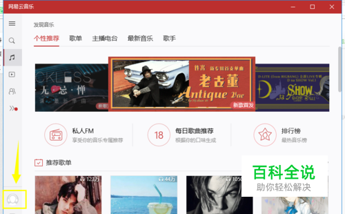 启动网易云音乐进入首页,点击左侧边的头像,如下图所示