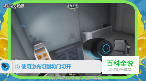 找到残骸遗迹,进入里面,寻找声呐模块,前进会看到一个密封的门,使用激光切割切开