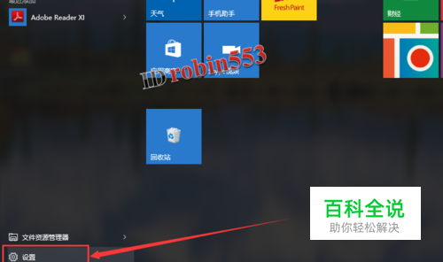 点击桌面左下角的Win图标(开始),然后点击“ 设置”选项。
