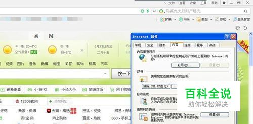 在弹出的Internet属性页面中,点击”内容“进入设置页面。