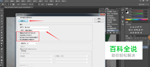 点击 文件--自动--批处理,现在我们要把这个动作储存到电脑上,刚刚是在软件里边。如果要实用的话要先打开软件,如果保持到电脑上的话直接拖拽图片到动作上就可以了。