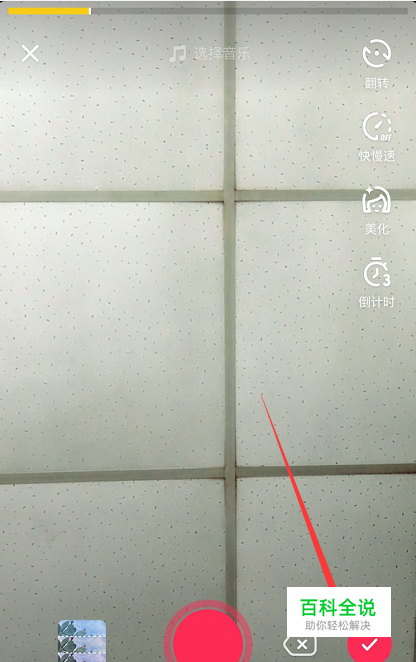 打开手机抖音,点击开始拍摄视频,拍好视频打勾选择