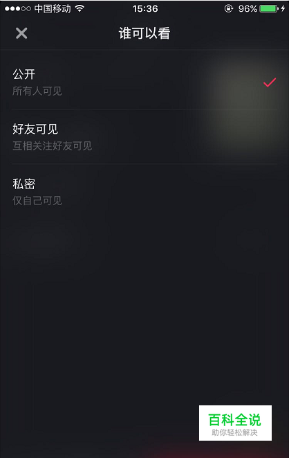 点击进入谁可以看,可以选择共同好友可见,或者是私密仅自己可见