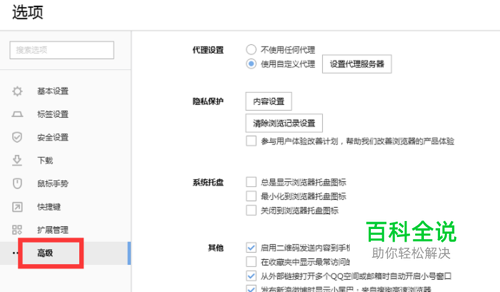 在选项里面的左侧点击〖高级〗设置,在高级设置列表里点击〖实验室〗右边的〖更多高级设置〗;