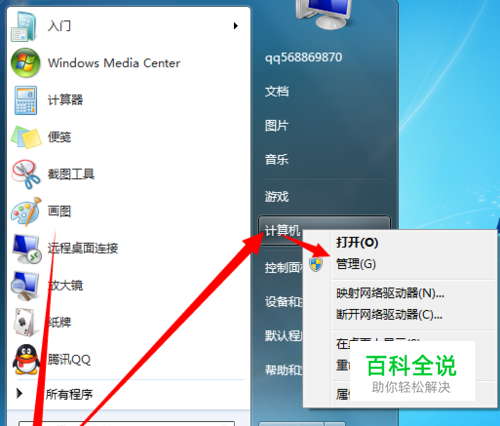 点击开始——右键计算机——管理,左面上直接右键计算机管理也是一样的