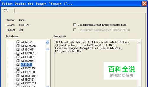 选择工程名及存储位置,选择CPU类型。这里选择Atmel--AT89C51。这要看自己的需求。在Description中有对此CPU一些信息如IO口、定时器、串口、存储空间等介绍。若CPU硬件资源不够的可以选择别一款