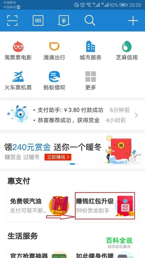 现在社会手机是必不可少的,用处也越来越广阔。出门不用拿钱包,银行卡,只要手机里有钱,拿部手机就能满足吃喝玩乐住行,其中还有好多实惠。用支付宝领了红包,还能得到赏金,方法很简单,下面就介绍一下具体的操作方法。