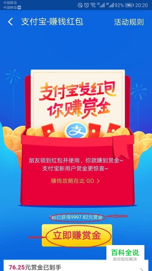 支付宝红包和赏金怎么领取