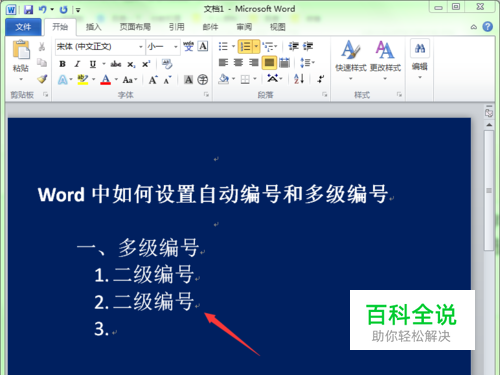这时二级编号就会向左退出一格,变成一级编号的形式。通过上述方法,巧妙地应用”Tab"或“Shift+Tab"在多级编号之间进行切换,从而达到输入多级编号的目的。