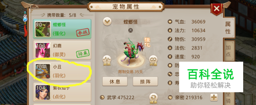 我们进入宠物界面之后,我们选择我们要染色的宠物,因为有些宠物是没有开放染色的,我们点击我们的电精。