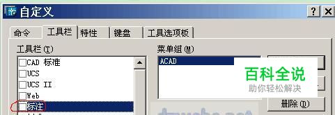 ②常规性专业法 执行菜单操作“工具”→“自定义”→“工具选项板”,弹出如下图的对话框!
