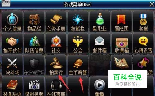 你直接按ESC就可以看到这2个选项,先看看拍卖行