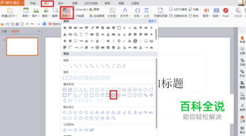 点击菜单栏中的“插入”,然后点击“形状”,选择圆形空心的形状标志,然后在电脑上按住“shift”键,在空白处画图形;