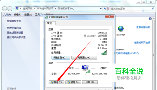 在“无线网络连接状态”中,点击“属性“,点击”internet协议版本4“,如图