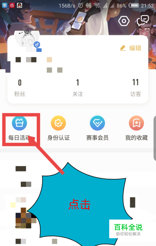点击我,打开我的界面后,在登录的头像下面,有个每日活动选项,点击每日活动。如图所示