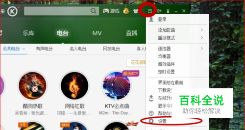 打开酷狗音乐,点击页面右上方的”下拉按钮“