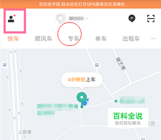 点击打开滴滴出行,在滴滴出行的首页点击左上方的人物图标。