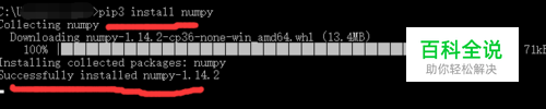 现在我们可以进行第三方库的安装,先安装numpy库(提供数组支持,以及相应的高效的处理函数),具体如图所示:
