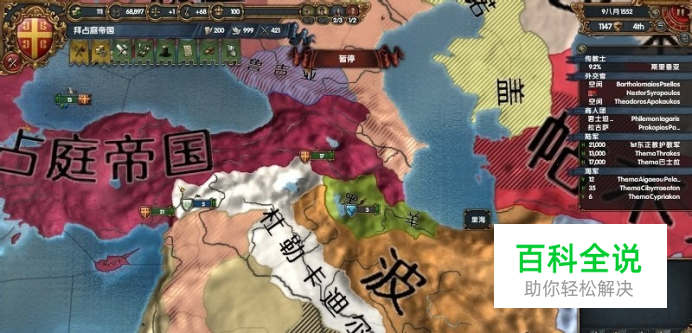 用的拜占庭,北方的匈牙利被打成联统,杜勒卡迪尔也是附庸国,这个T字刚好把小马和波斯隔开,黑羊刚被打成两个城,撤掉所以宣称,下场可以吞并。