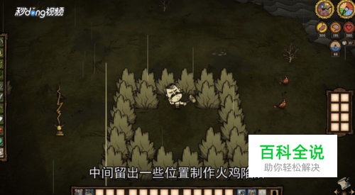 在白天采摘浆果有几率出火鸡,这时火鸡就会被曼德拉草吸引住,石墙可以阻挡火鸡采食曼德拉草
