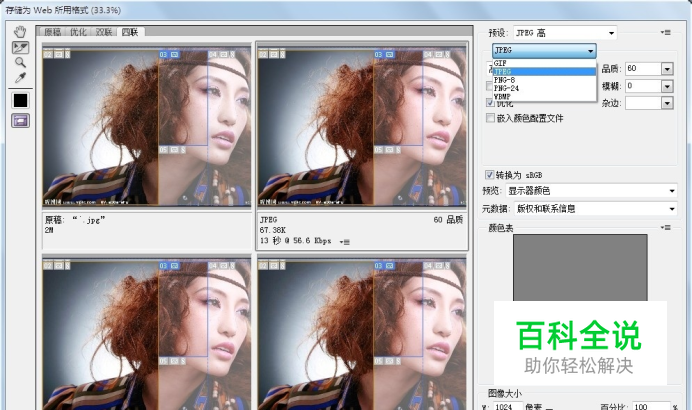 在右侧的下拉菜单中众多格式中,选中JPEG格式。