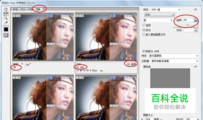 我先把图片调整为四联来对比效果,可以看到左侧四联中不同的 品质,对应着不同图片大小,根据你的要求调整即可