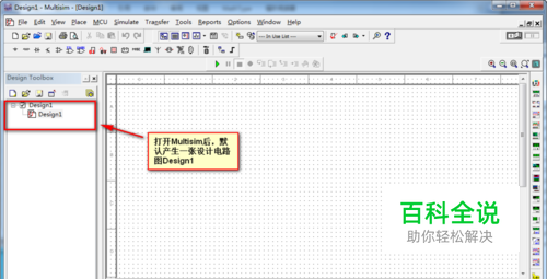 打开Multisim,默认产生一张电路图Design1