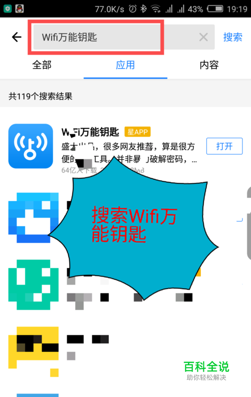 打开手机应用商店,在搜索栏搜索WiFi万能钥匙软件。