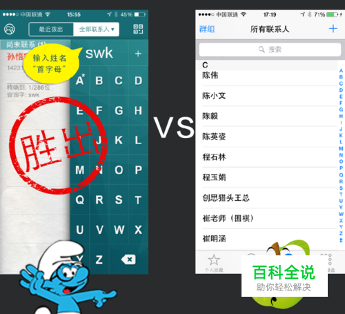 看谁在通讯录查人更快 拨号精灵:在“精确定位”+“常用联系人”优先的配合下,打电话基本上都是一到两键就能拨出! 苹果自带:点击“字母”键定位,然后上下翻动通讯录查找;或者输入“姓名”搜索,使用不甚方便。