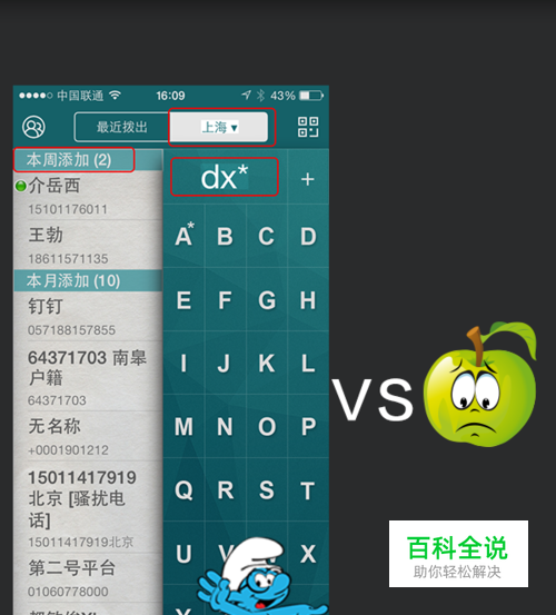 比模糊搜人 忘记联系人姓名,是否能通过其他线索,查找到联系人 拨号精灵:可以通过联系人的“地区”、“添加时间”、“公司名、职位”进行搜索 苹果自带:完全没有办法
