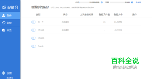 如果你想备份数据库,点击数据库,启动备份