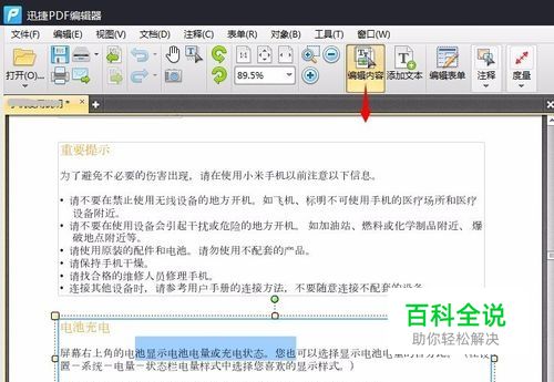 编辑PDF页面内容,用编辑器打开文档后,直接选择编辑内容工具,文档会进入编辑状态,这时页面的内容就能直接编辑修改了。