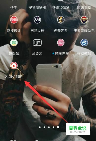 打开手机,找到火山小视频,点击并进入,如图所示。