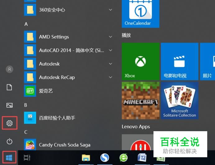 玩cf出现黑边的话往往是我们的显示器的分辨率设置的问题导致的,我们点击电脑桌面左下角的微软按钮,弹出的界面,我们点击设置;