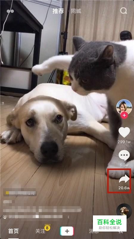 然后点击一个自己喜欢的小视频右侧的分享图标。