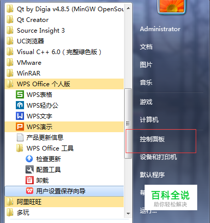 点击开始菜单,在开始菜单中点击控制面板,打开控制面板选项