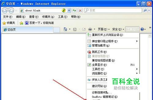 在IE浏览器窗口中选择【工具】→【Internet选项】命令,如图所示。