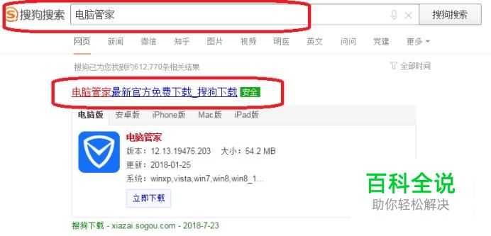首先,我们需要下载腾讯电脑管家(别的电脑管家类软件应该也可以),如图所示,浏览器搜索“电脑管家”,找到资源并下载安装到电脑中。