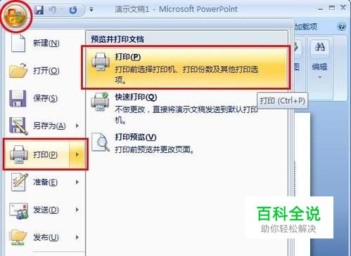 打開“列印”對話方塊 Office2003:執行“檔→列印”命令。 Office2007:點擊Offfice按鈕-列印-列印。 或者直接按Ctrl+P。