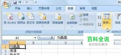 在Excel中,我们可以先不按照任何顺序输入姓名,之后选中姓名列单元格。单击Excel功能区中的“数据”选项卡中,“排序和筛选”功能组中的“排序”按钮。