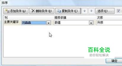 在弹出的选项窗口中,选择右上角显示的“数据包含标题”选项,并将主关键字选项设置为姓名列。