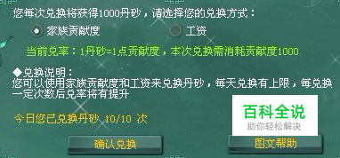 兑换丹砂 可以使用家族贡献度和工资来兑换丹砂,丹砂每日的兑换次数有限制。