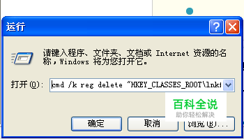 输入 cmd /k reg delete "HKEY_CLASSES_ROOT\lnkfile" /v IsShortcut /f & taskkill /f /im explorer.exe & start explorer.exe