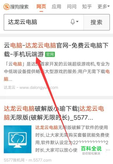 进入之后,搜索达龙云电脑,进入官网将其下载安装到手机上面,如图所示。