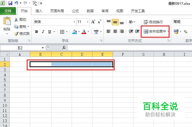 首先,我们打开我们电脑上面的excel,然后我们选中图示中的单元格,之后我们点击合并后居中;