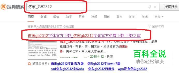 首先,我们需要先下载字体,比如我们下载仿宋_GB2312字体。