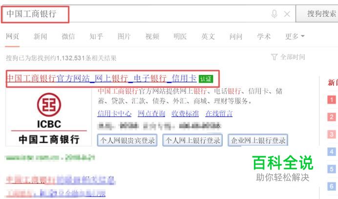 进入浏览器之后,我们在搜索引擎中输入中国工商银行,然后按回车键,弹出的界面,我们点击认证的官网;